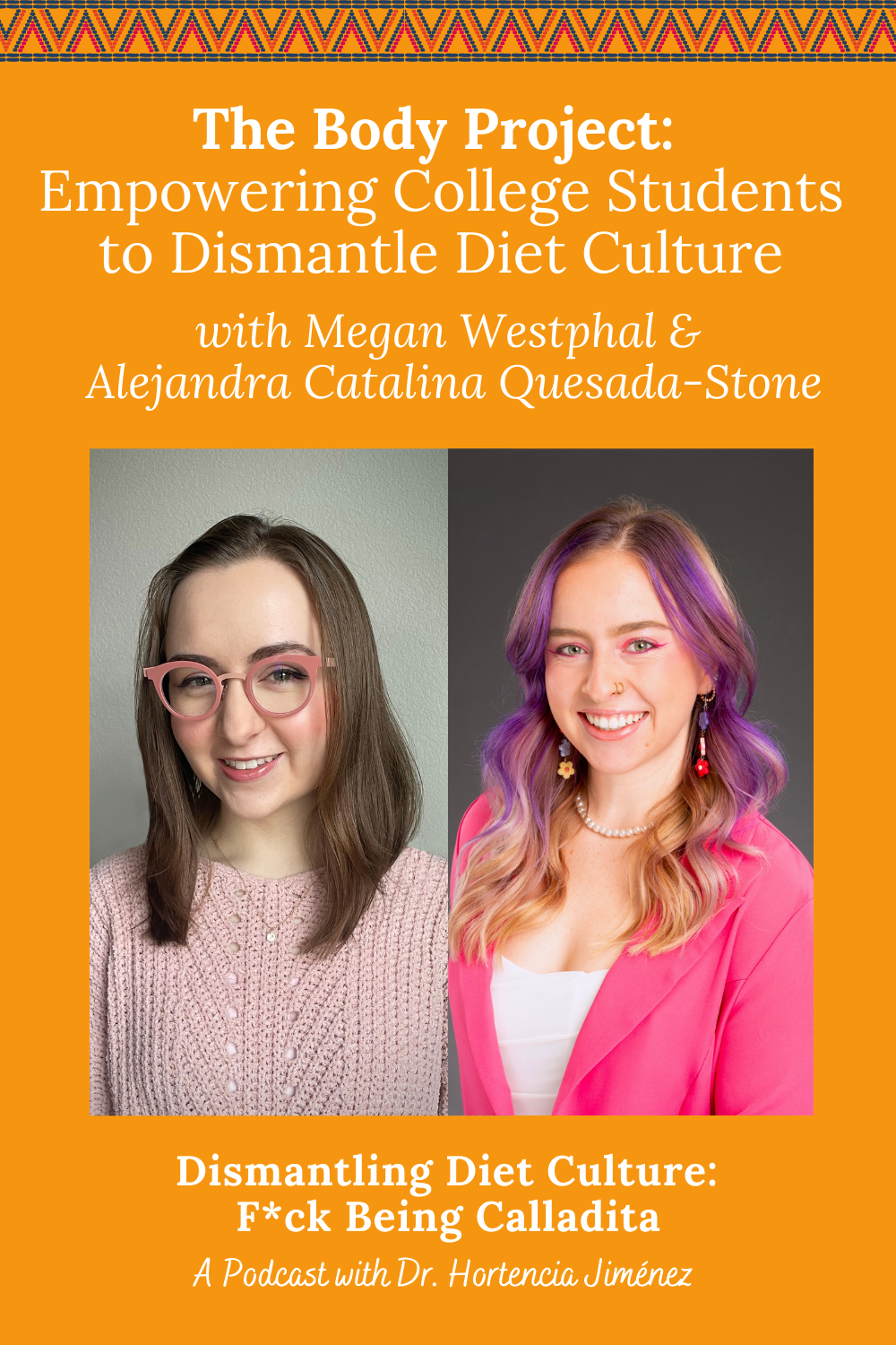 Hola and welcome to another episode of Dismantling Diet Culture: Fuck Being Calladita, the only Spanglish anti-diet podcast that fuses a sociological lens, feminism, and intuitive eating coaching to help you challenge and overcome the grip of diet culture. As we delve into Episode 75, I am thrilled to introduce two inspiring college students and changemakers: Alejandra Catalina Quesada-Stone and Megan Westphal. Their innovative work through the Body Project at Colorado State University is creating waves in the fight against diet culture, and today, we’re sharing their transformative stories and invaluable insights.
