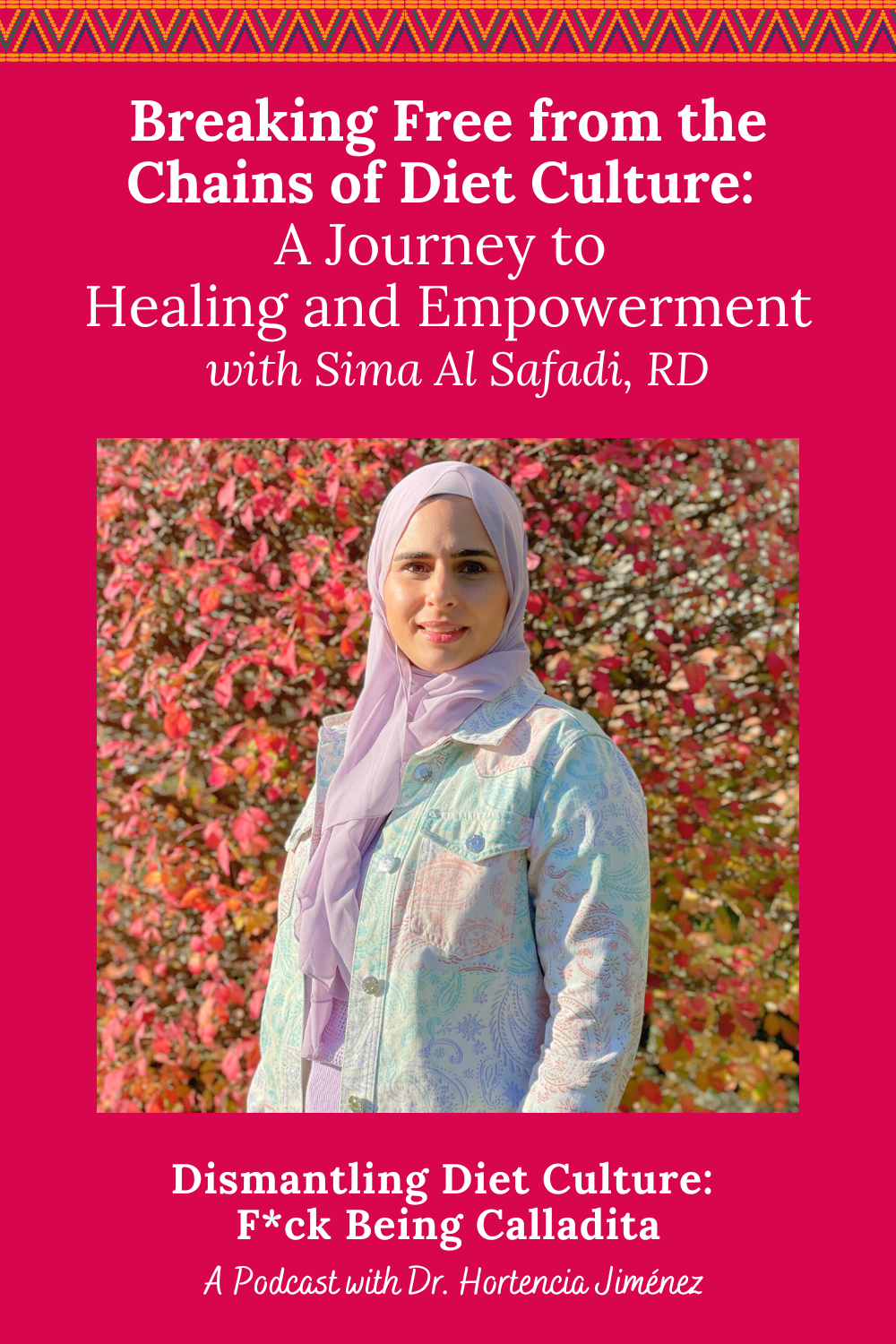 Hello, I’m Hortencia Jimenez, host of the “Dismantling Diet Culture” podcast. Today, I had the privilege of discussing a crucial, yet often overlooked topic with guest Sima Al Safadi, a seasoned registered dietitian and intuitive eating counselor. Our dialogue shed light on the insidious impact of diet culture, a subject close to both our hearts, and a prevalent issue sweeping across continents from the U.S. to the Middle East.