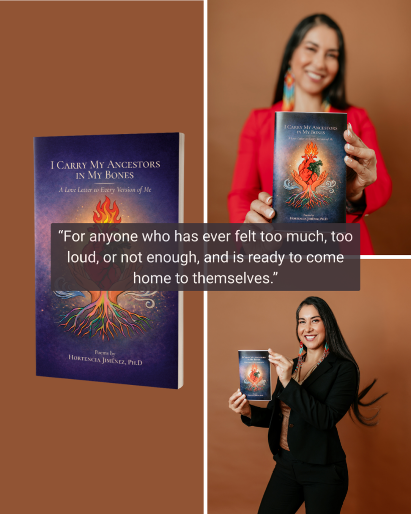 In this intimate and powerful debut, Dra. Hortencia Jiménez weaves poetry, memory, and ancestral wisdom into a collection that speaks to the many versions of ourselves we carry across time.